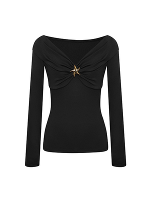 Starfish Button V-Neck Knitted Ruched Top