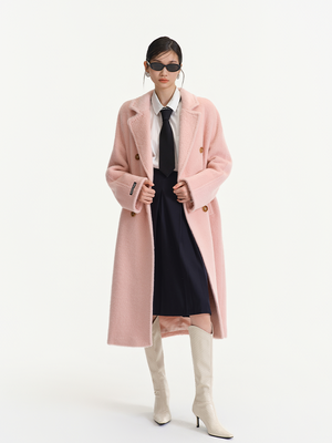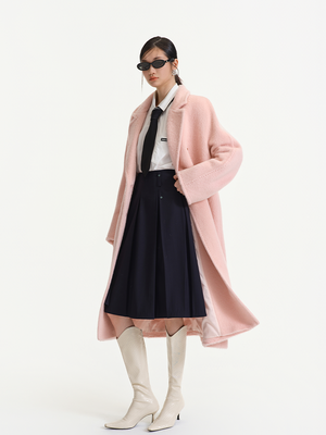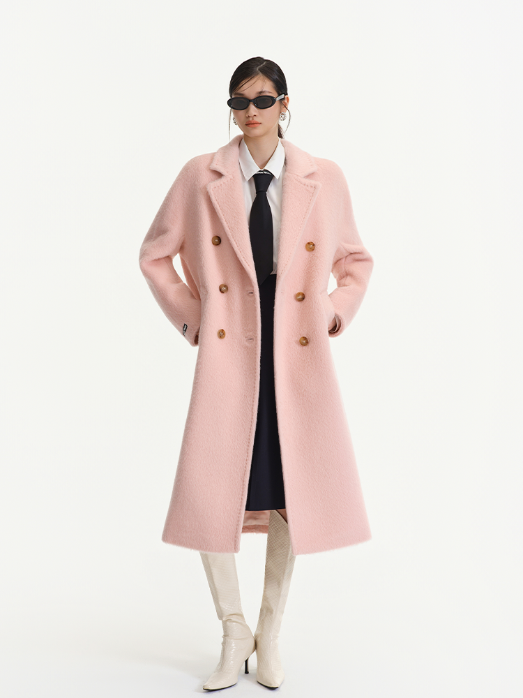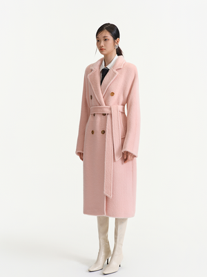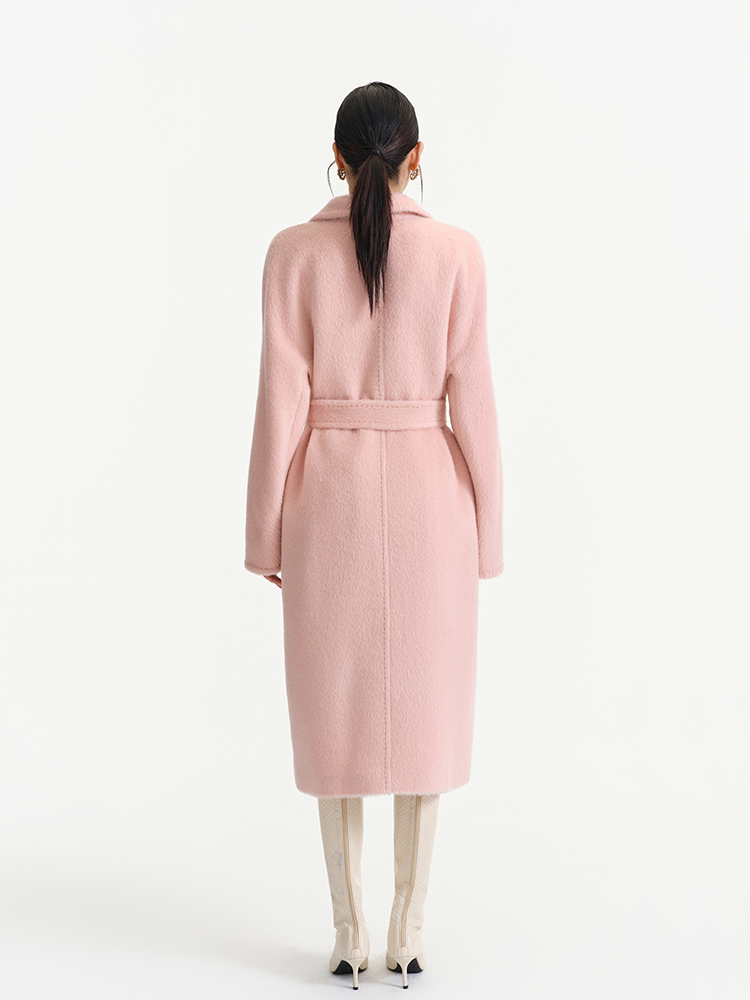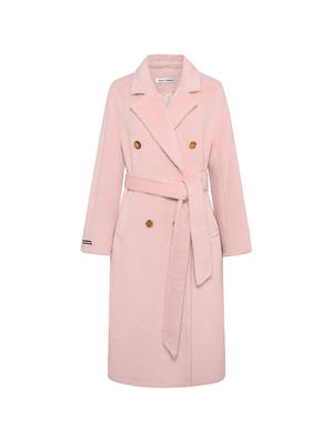 Pink is soft and romantic, enhancing the classic appeal and sense of layering of the double breasted coat. The waist belt optimizes the figure proportion and highlights the waistline.