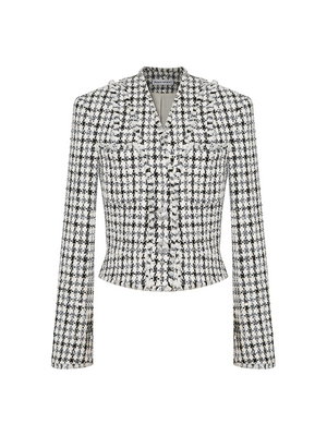 Frayed edges add a retro fashion vibe, while the waist cinch optimizes the figure proportion.