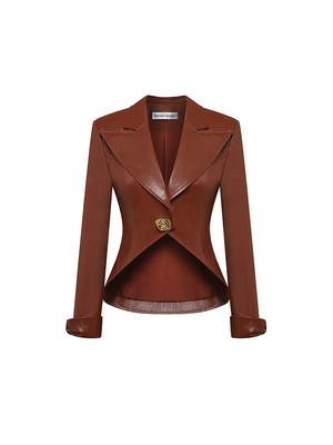 A simple, stiff suit cut with a tuxedo style brings elegant, feminine power. This suit, made of PU leather, makes the outfit even more stylish. Pair it with a pair of high heels and makeup of vintage red lips for a glamorous look.