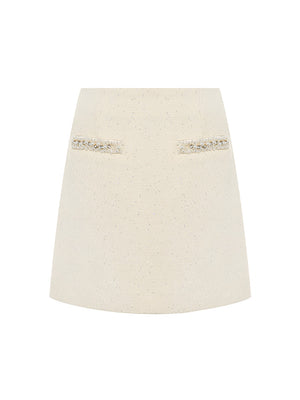 The mini skirt's fit exudes youthful vitality and a fashionable vibe. The pearl chain embellishments on the pockets are the highlight of the design, breaking the monotony of the solid color and adding a sense of delicacy and luxury.