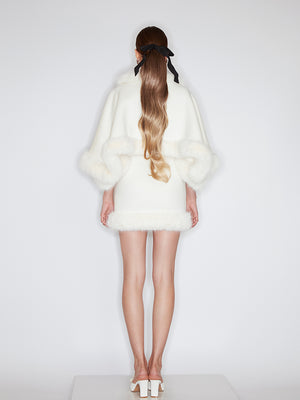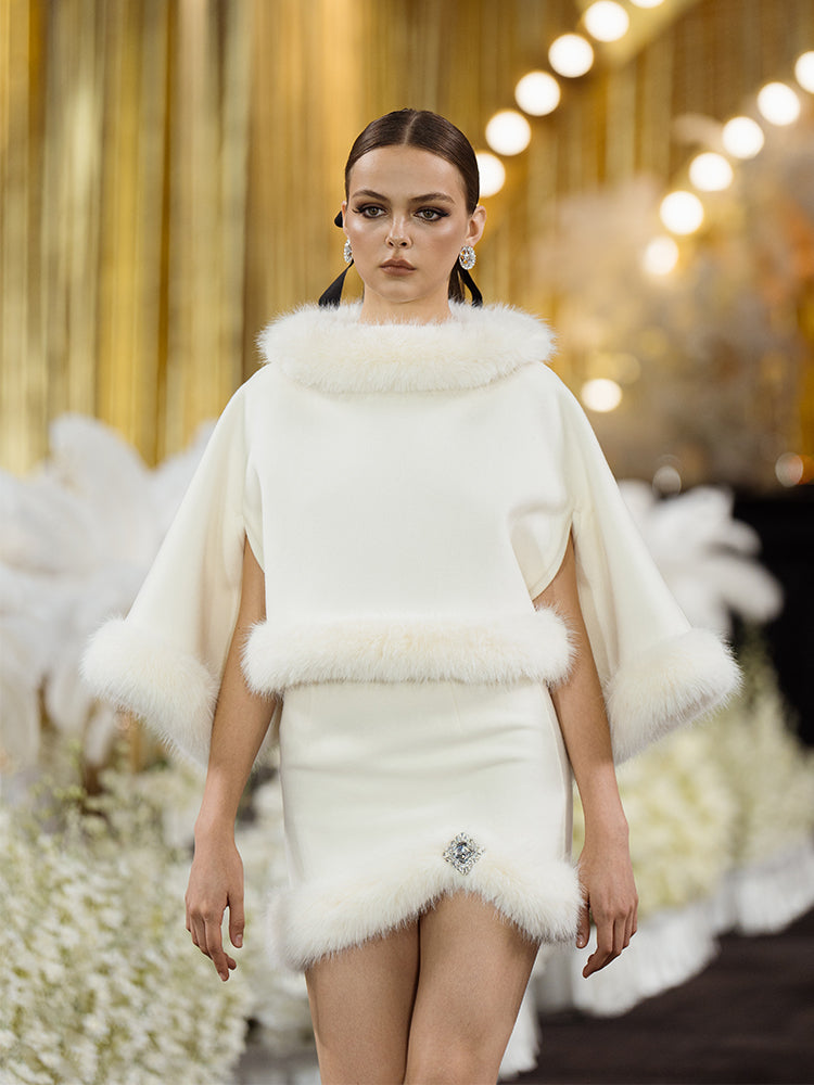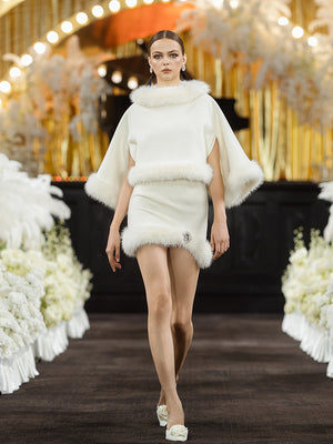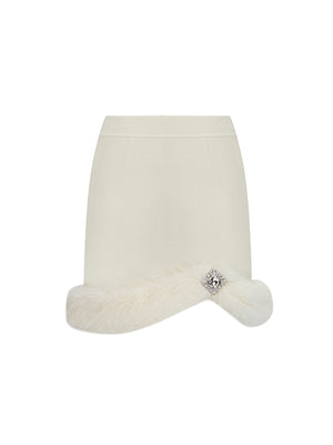 This faux fur-decorated skirt is made of high-quality sheep wool fabric and is soft and comfortable. The curved hemline design emphasizes the dynamic and elegant curves of the dress. Sparkling diamante embellishments on the hemline are the pursuit of exquisite details. It is a sleek and versatile choice for your closet.