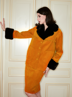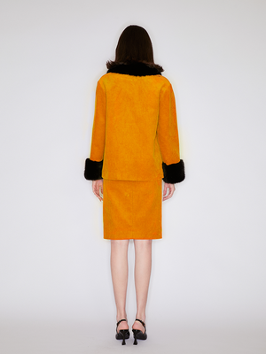 The orange color is bright and unique. The simple one-step skirt design exudes glamour whether it's paired with a simple white shirt for a workplace commute or with a statement top for a casual outing. Pair with the matching jacket and for full impact.