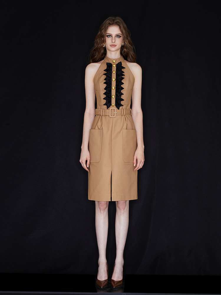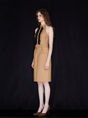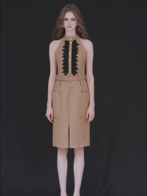 This dress combines the blunt sensuality of workwear style with feminine elegance for a relaxed look. It is a dress for many occasions.