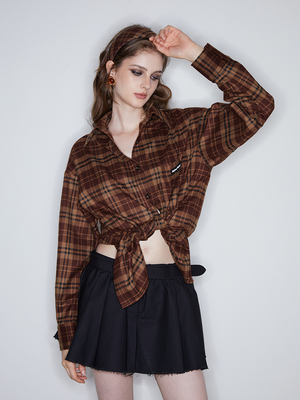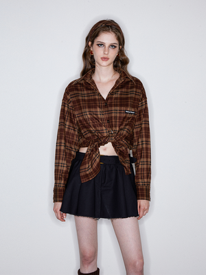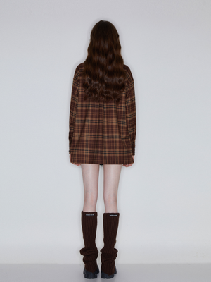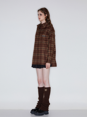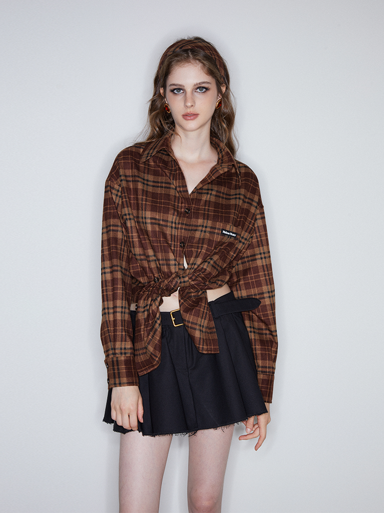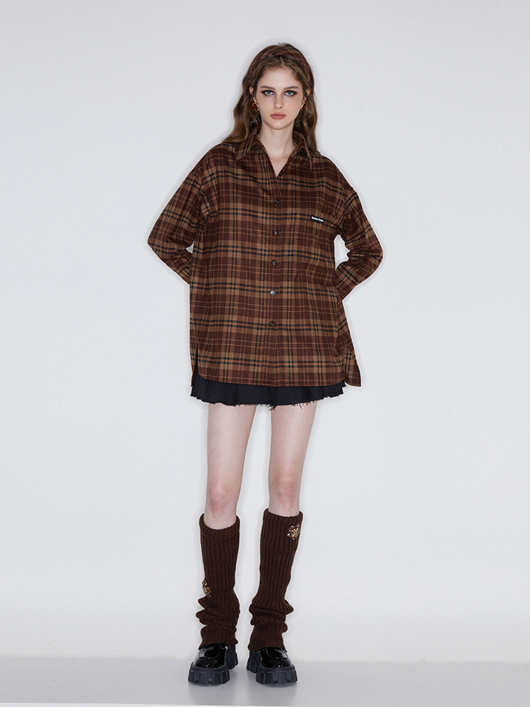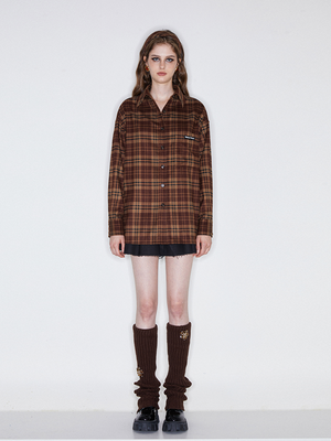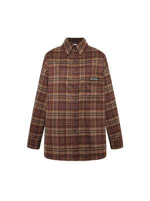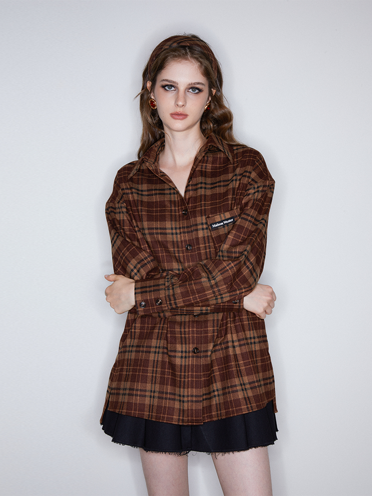 This oversized shirt presents a simple and smooth silhouette. The fabric texture is soft and comfortable. Checkered logo to show off the classic retro style. Loose lines emphasize the casual and fashionable style. Can be worn alone or as a matching jacket, a versatile item for your winter closet.
