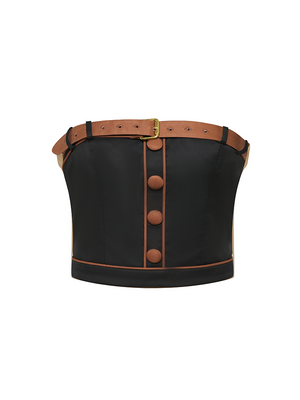 This off-the-shoulder top is decorated with color-blocked buttons; it is delicate and retro. It is a very fashionable piece. Pair it with the matching jacket to present a personalized and stylish sense of styling.
