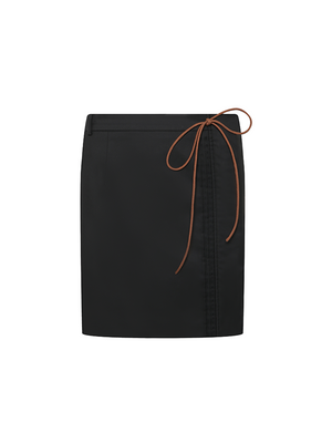 A cotton blend fabric is chosen to create a classic and simple silhouette. It is embellished with a color-blocking bow and chic details for a sophisticated look. This versatile fashion item is a must-have.