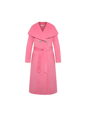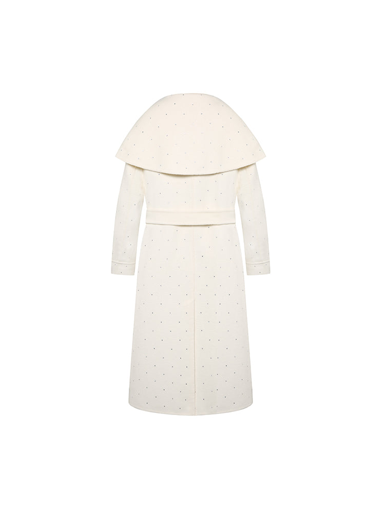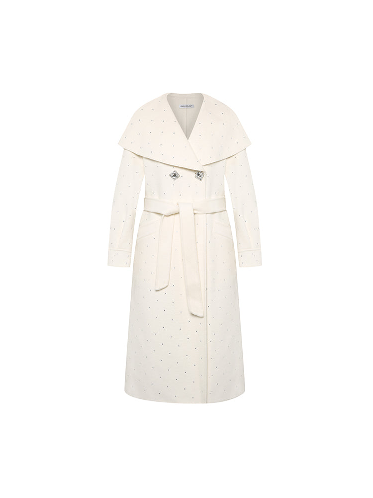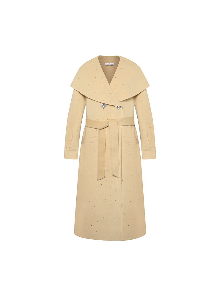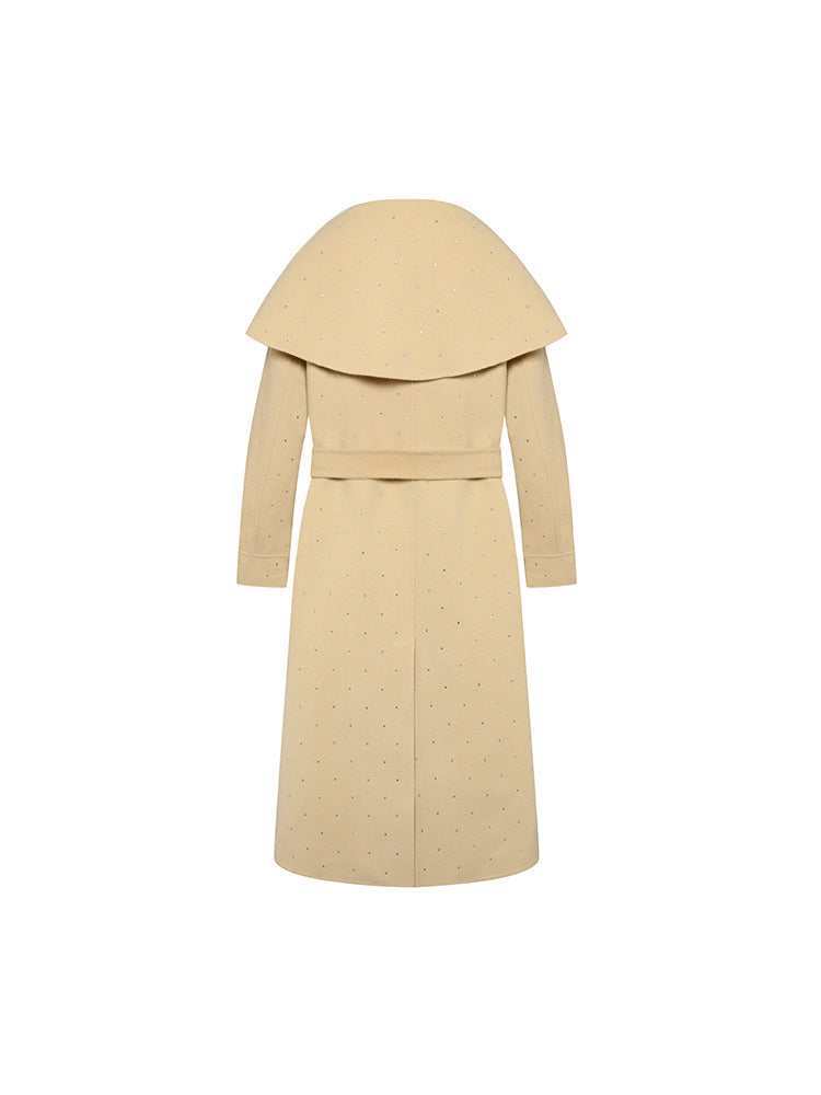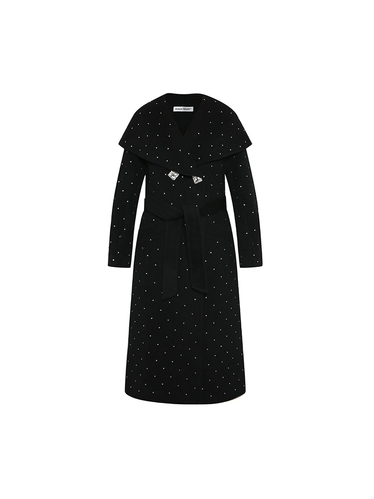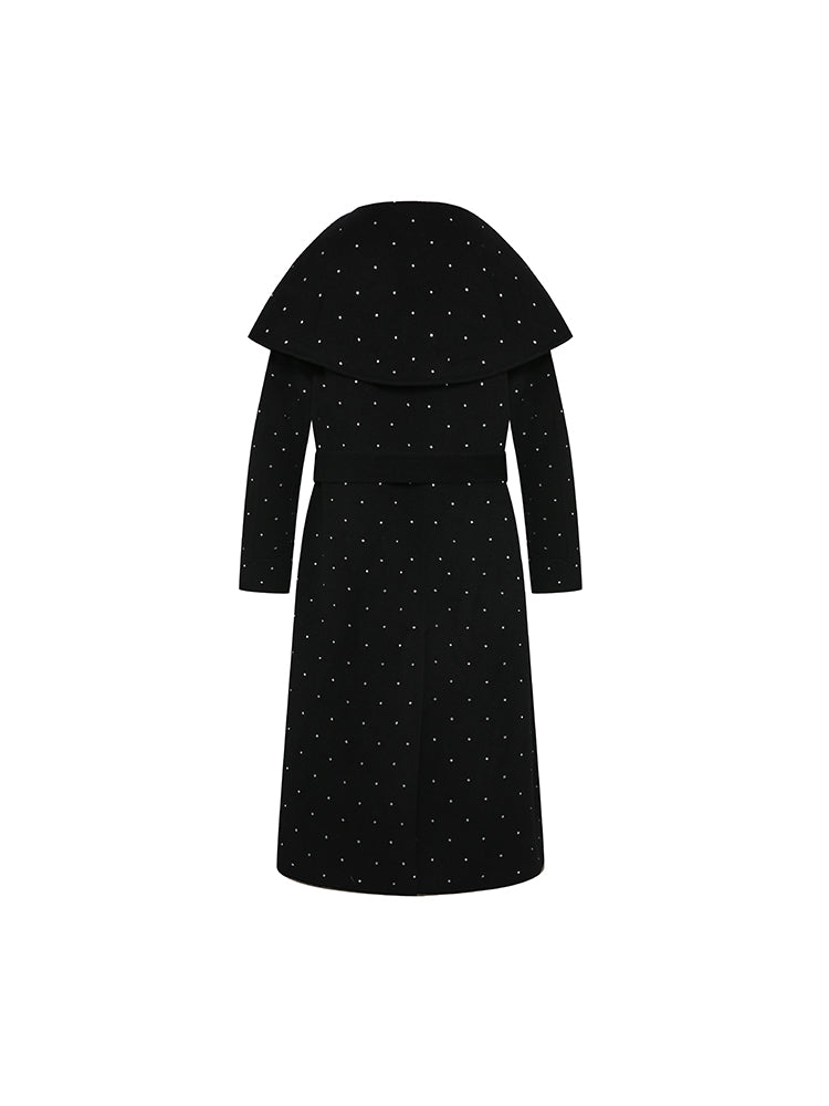 Large Lapel Rhinestone Wool Coat