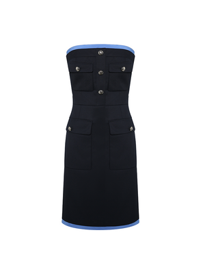 This strapless dress draws design inspiration from vintage elegance and combines sex appeal with comfort. It is made of wool blend fabric to enhance the wearing experience in the fall and winter seasons. The fitted silhouette outlines the waist and emphasizes curves. Pair it with the matching jacket is ideal for both formal occasions and everyday wear.