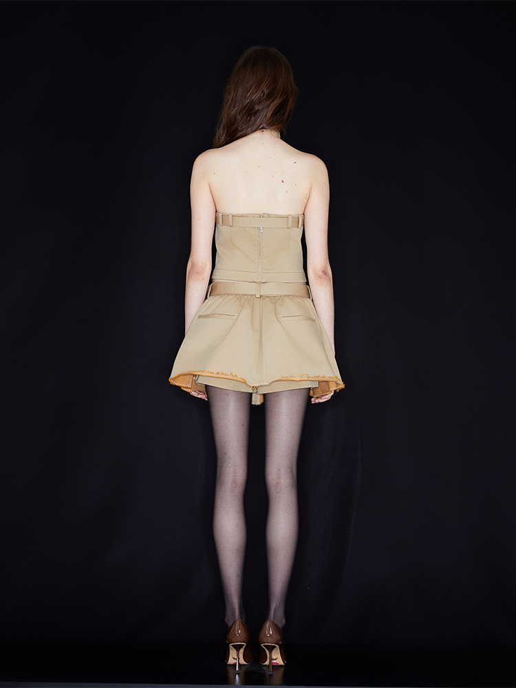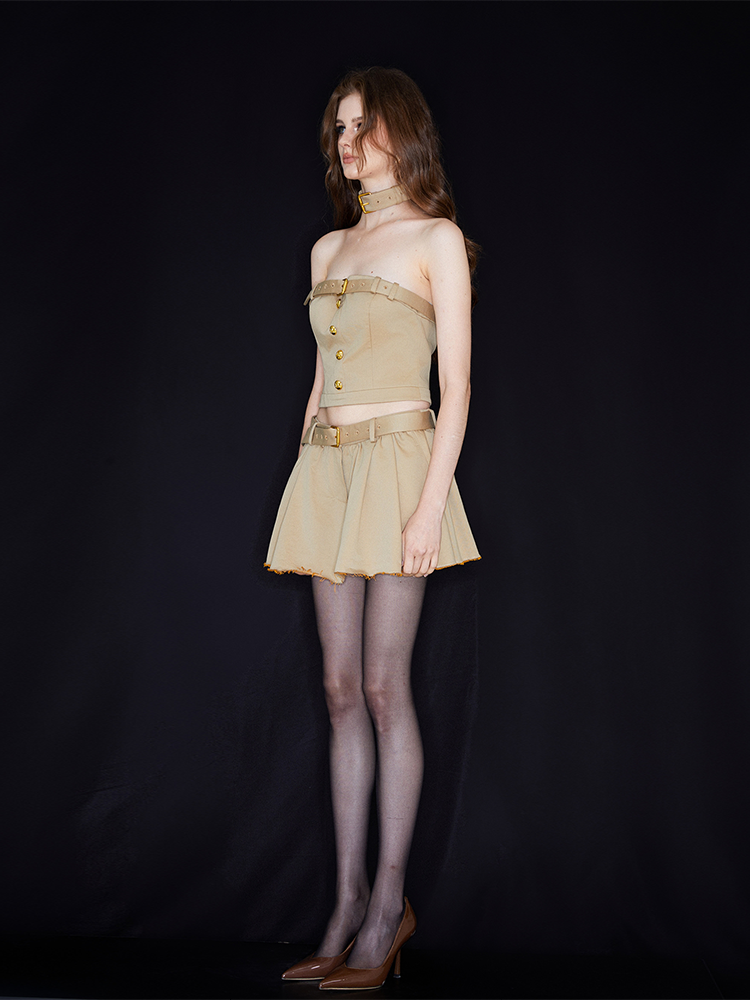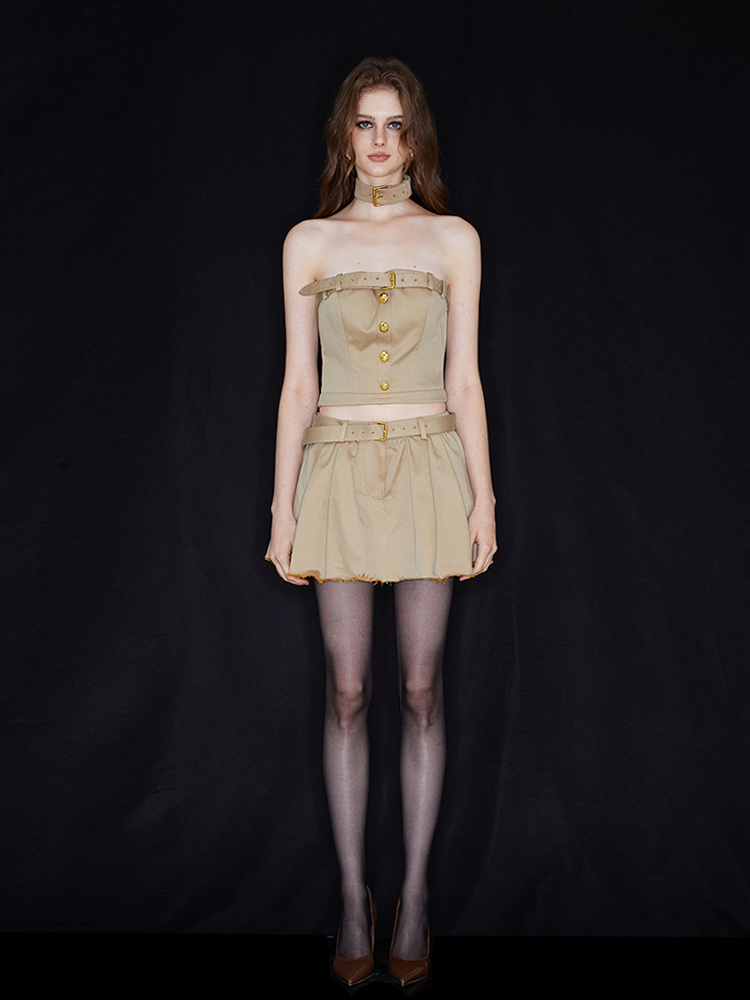 This off-the-shoulder top, decorated with a belt, is delicate and retro. It is a very fashionable piece. Whether you pair it with a skirt or pants, it will be a stunning look.