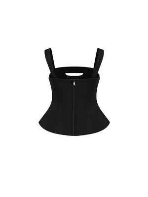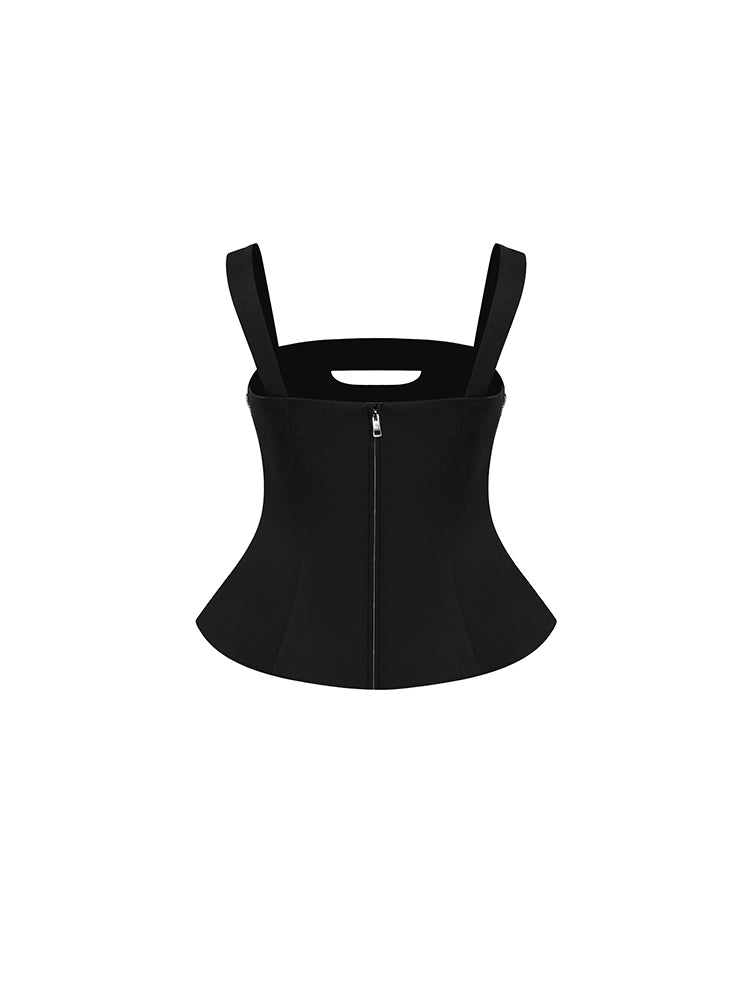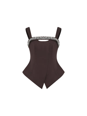 The rhinestones on the chest are highly polished, each one exuding elegance and sophistication. The distinctive hollow design serves as a visual focal point, showcasing exceptional appeal. Pair with the matching shorts for full impact.