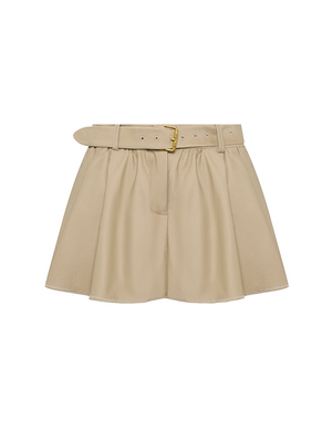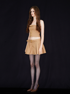 This mini skirt is made from a comfortable fabric. Combines classic indented pleats with skirt whisker detailing. The movable waistband is designed to bring style and flexibility to the look. Showcases a lively and sweet vibe