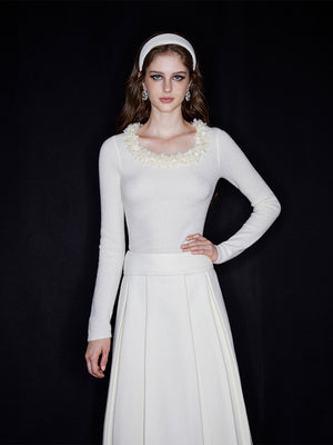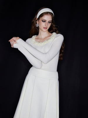 Wool tops are ideal pieces for winter wear. Made of pure wool, it is very warm in winter. The fabric is soft to the touch and durable enough to last you all season long. The neckline is decorated with lace. With handmade beading. Adds a sense of sophistication and luxury.