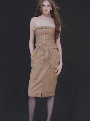 This is a retro-chic pencil skirt. It is made of cotton fabric. It is not only comfortable but also versatile. Present a retro chic daily wear. Pair with the matching jacket and for full impact.