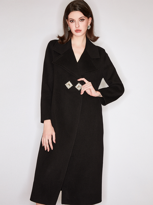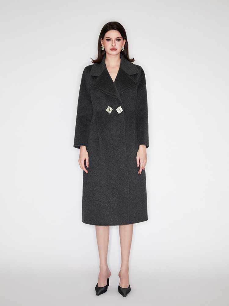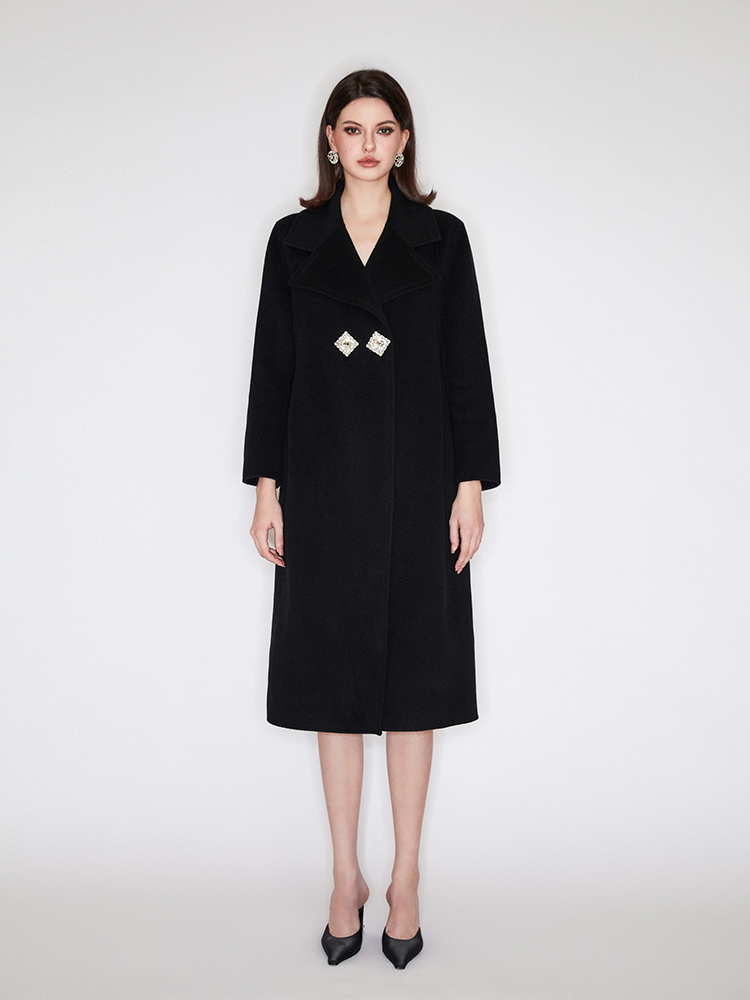 This is a must-have coat for your winter closet. The texture is soft and delicate. It can keep you warm and maintain your elegance and noble temperament in winter. H-shape tailoring is meticulous and well-fitting, with a clear silhouette. The shoulder design is slimming and slimming. The classic notched lapel shows the timeless fashion style. Customized jewellery-grade rhinestone inlaid buttons sparkle like stars, adding a sense of sophistication and luxury. Multiple colours to choose from. Versatile styling for your everyday wear.