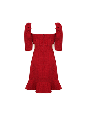A perfect blend of sweetness and elegance, this dress showcases femininity at every turn. Featuring a cut-out design at the waist, the skin tone mesh fabric creates a slightly translucent and seductive semi-transparent effect. It accentuates the silhouette and exudes sex appeal. Ideal for holiday parties.