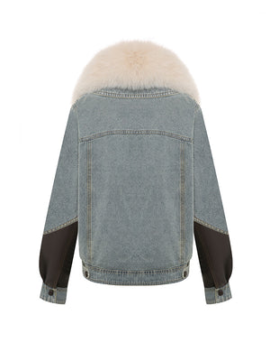 Light Denim Jacket with Faux Fur Collar