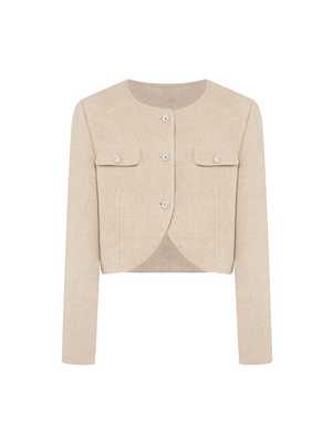 Crew Neck Cropped Wool Blend Coat