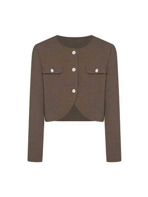 The double pocket design and crew neck element are the highlights, with minimalist buttons adding exquisite detailing, while the dual pockets enhance a practical layered vibe.