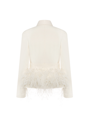 Cream White Feather Trimmed Hem Coat