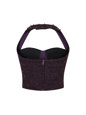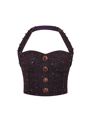 The halter design enhances the top's sexiness and sense of layering, while the gemstone buttons infuse a touch of luxury.