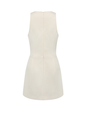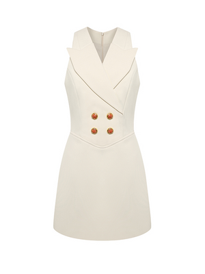 Beige Double Breasted Sleeveless Dress