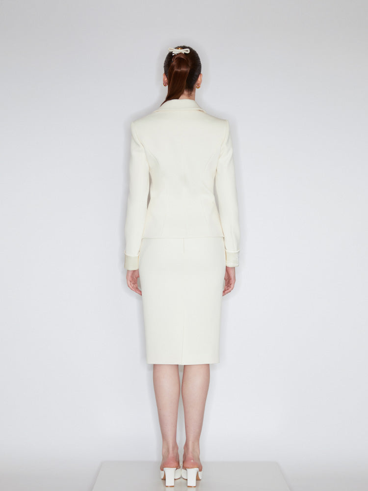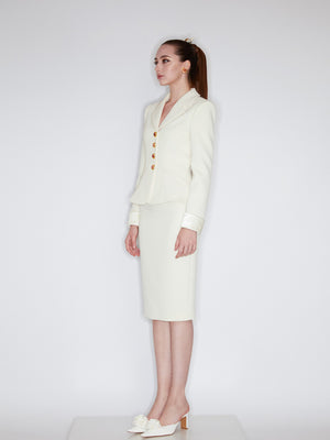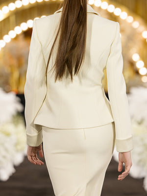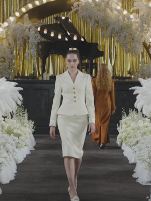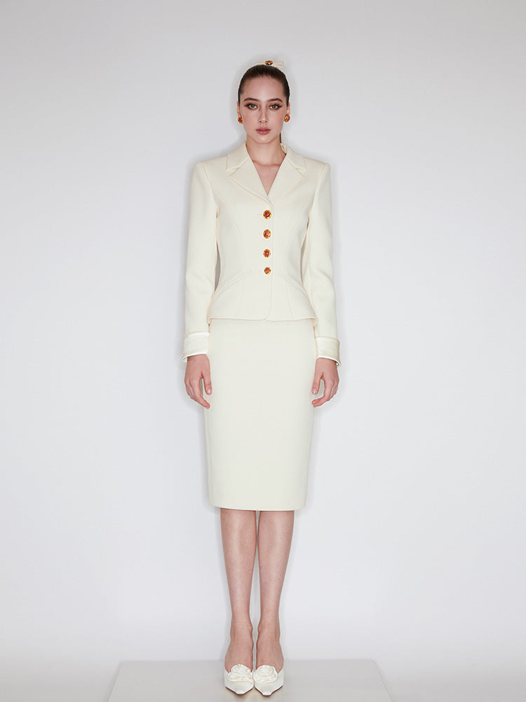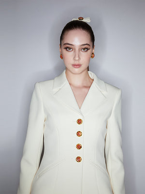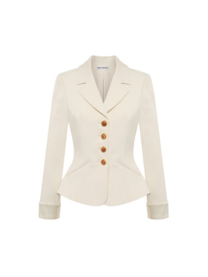 The blazer with its waist-cinching silhouette is made of soft and comfortable fabric in beige color and combines with smooth lines to show off the charming curves of your body. The gold buttons inlaid with resin are beautifully retro. Pair it with a pencil skirt in the same fabric for an elegant and chic look. Ideal for dating, commuting and parties.