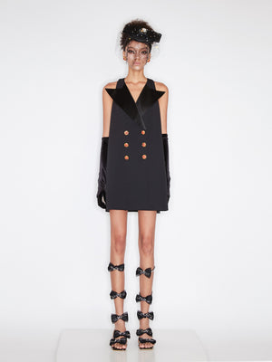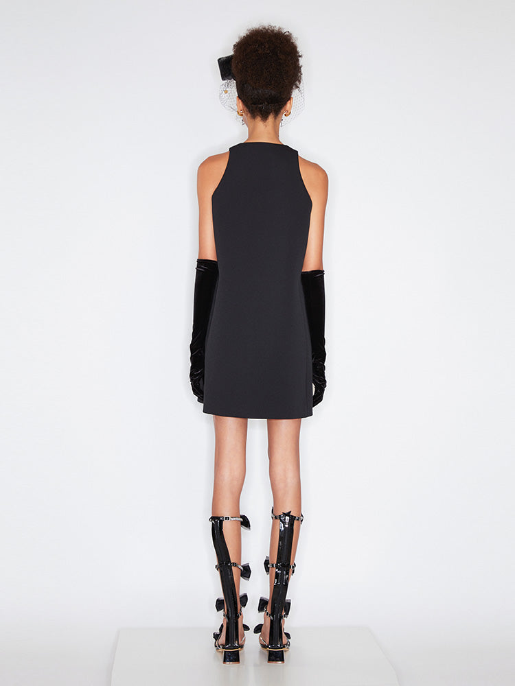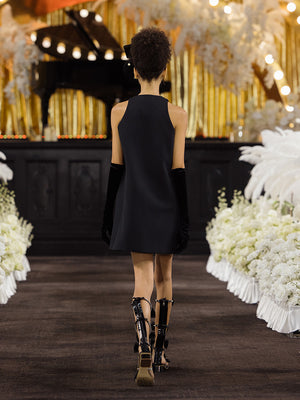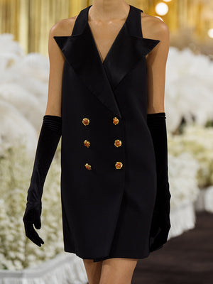 This dress features a backless design. The back mesh fabric presents a semi-transparent vision. Combine sexy and elegant. Resin inlaid buttons add a sense of detail and sophistication. This dress is available in various colours for you to choose from to meet your needs for different occasions.