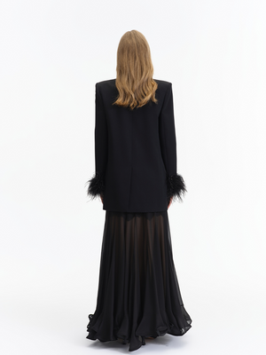 Black Feather Sleeve Satin Paneled Suit Jacket