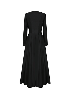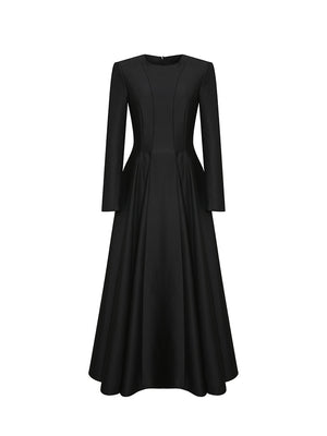 This dress presents an elegant and practical style. The tight fit wraps the figure beautifully. The loose, oversized umbrella hem exudes sophistication and elegance for a glamorous silhouette. It is a versatile piece for your fall closet.