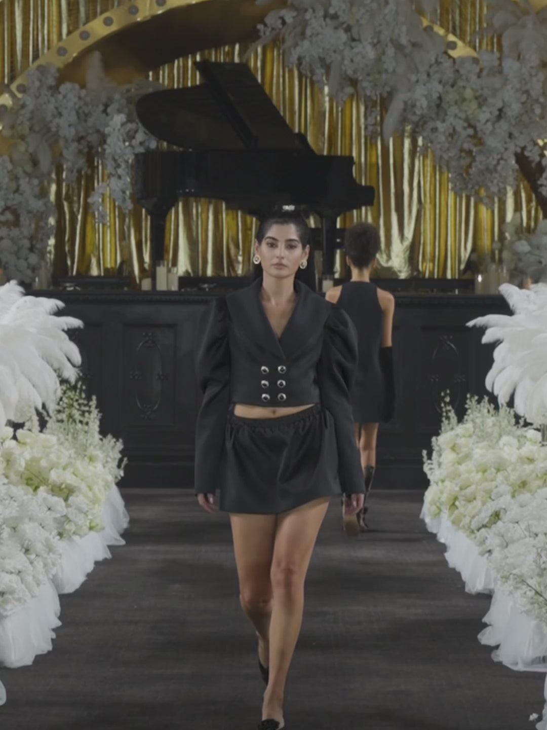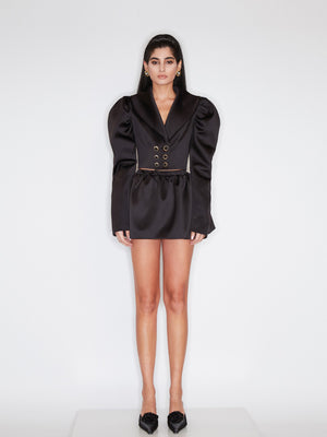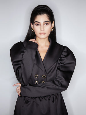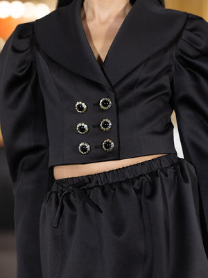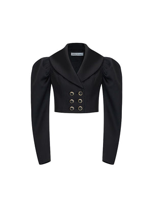 Black Satin Bubble Sleeve Short Jacket