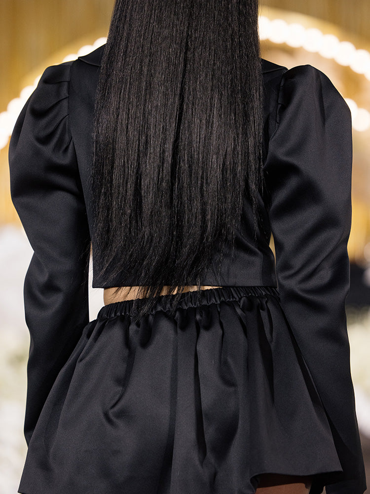 This puffy skirt is made of satin and designed with a chic and elegant silhouette. Whether it is for dates or parties, it is applicable.