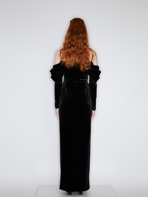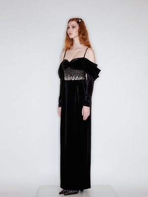 Black Velvet French Embroidered Gown Dress