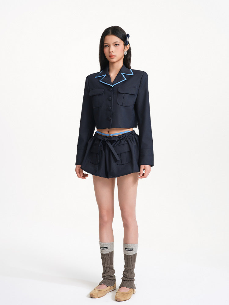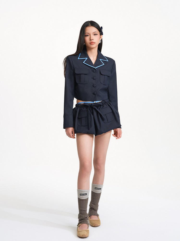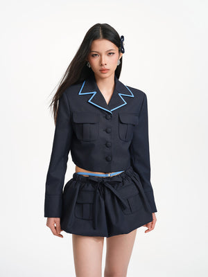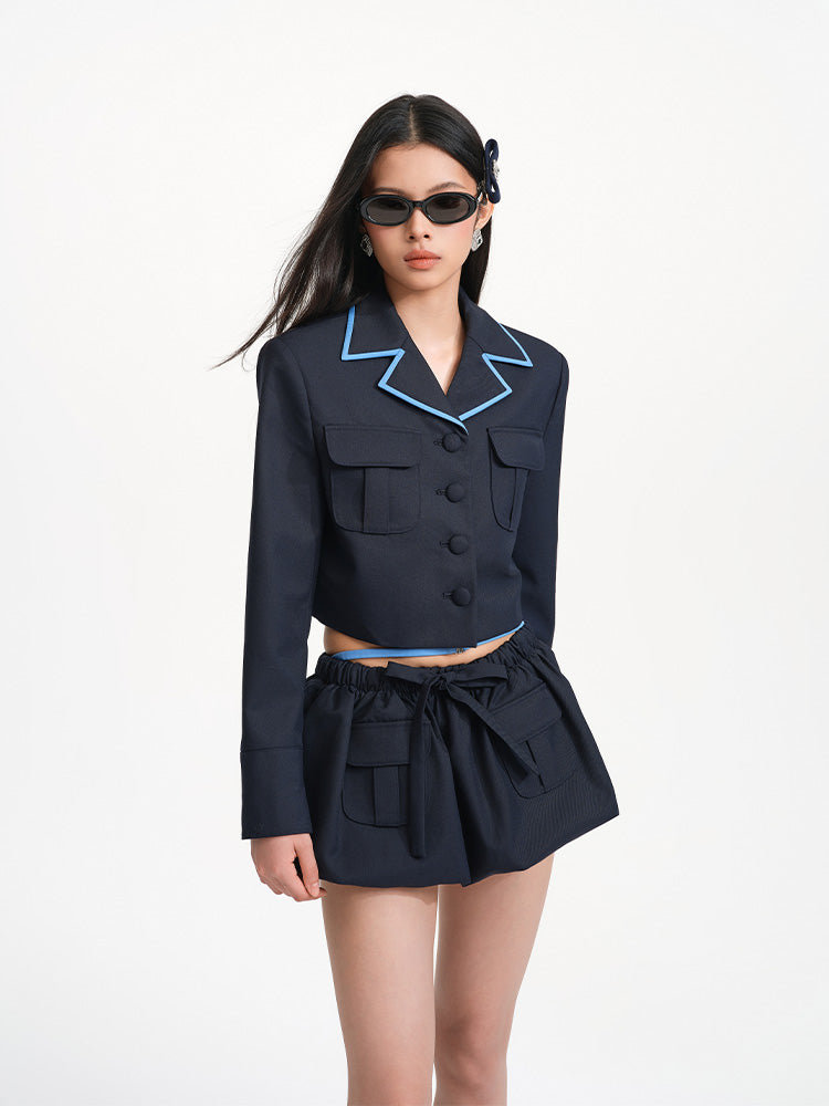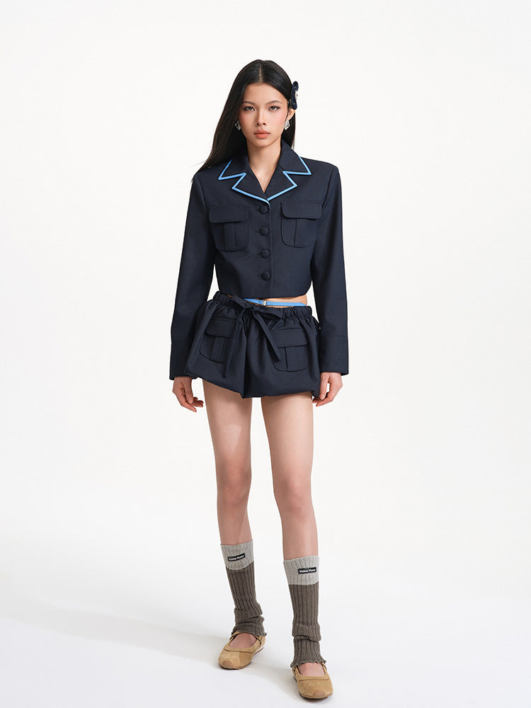 The bow detail at the waist adds a soft feminine charm to the overall look, balancing the tough edge of the workwear style and creating a blend of strength and softness. The double pocket design not only offers practical functionality but also reinforces the defining features of workwear style.