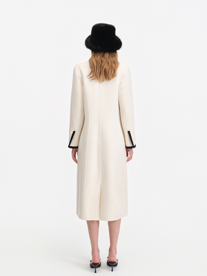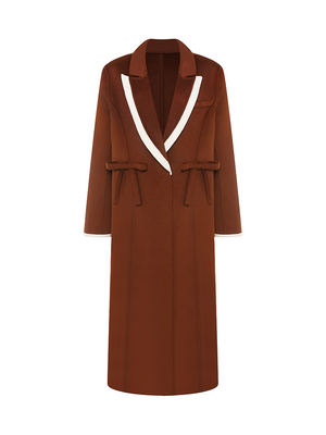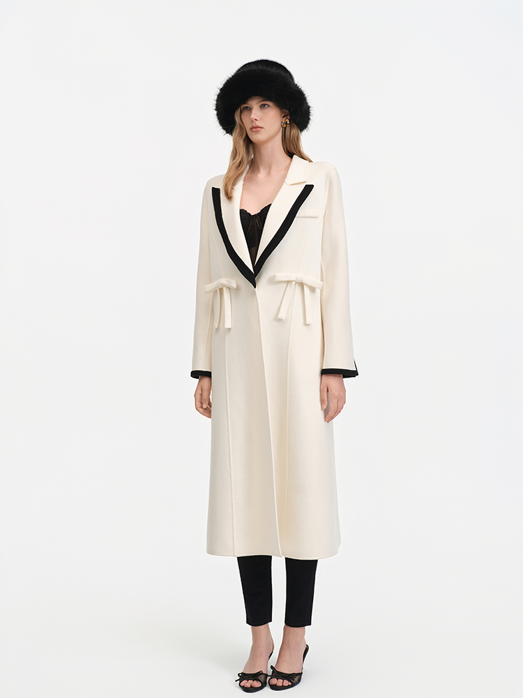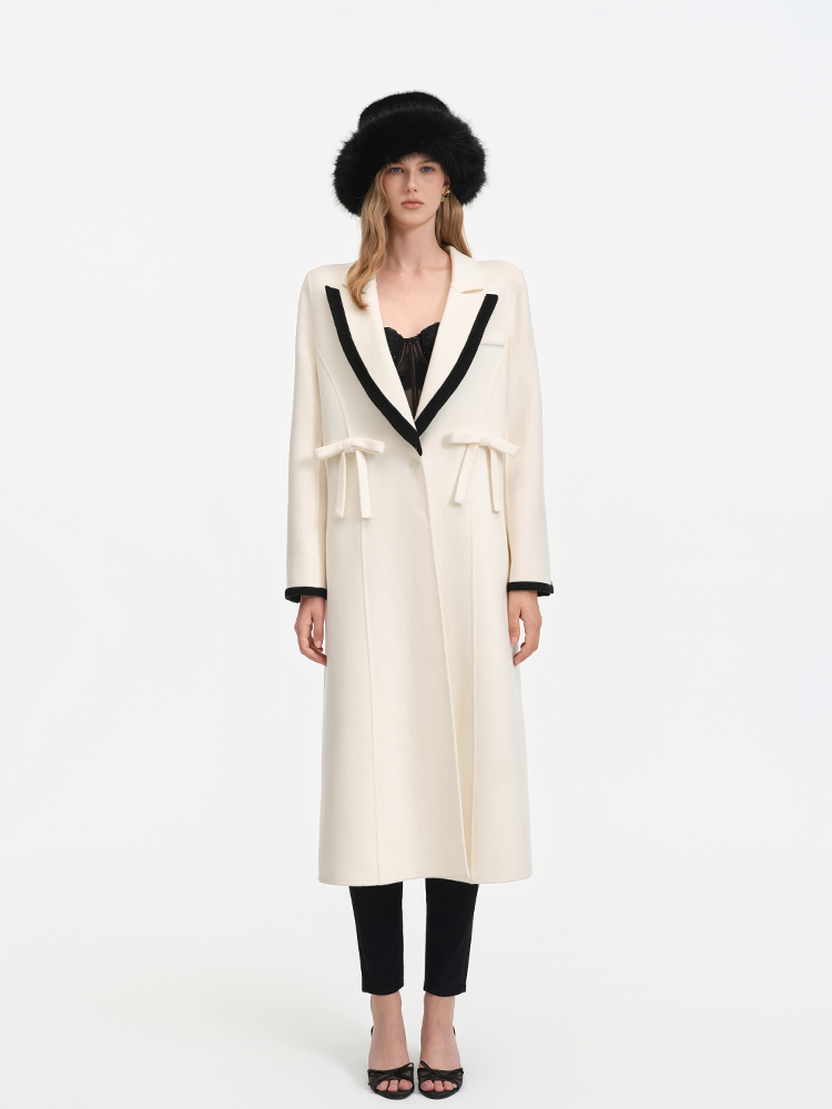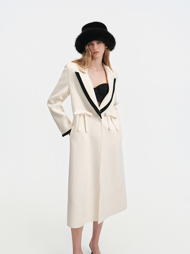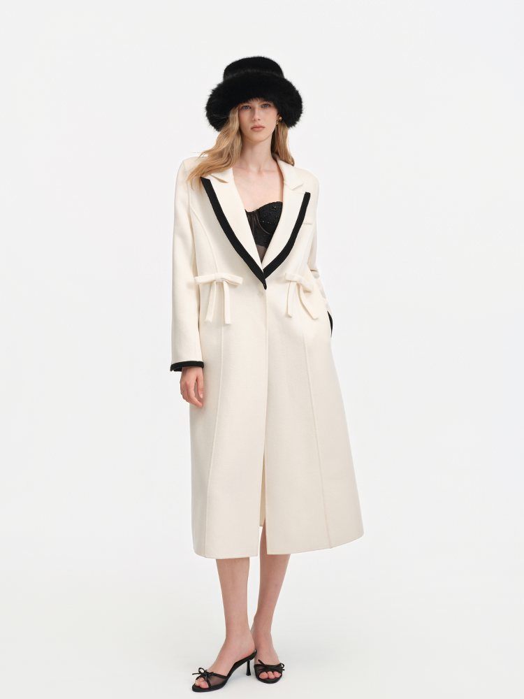 Color Blocked Bow Embellished Wool Blend Coat