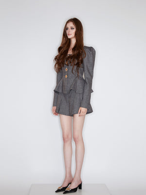 Gray Tweed Bubble Sleeve Square Neck Top