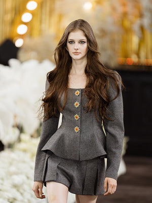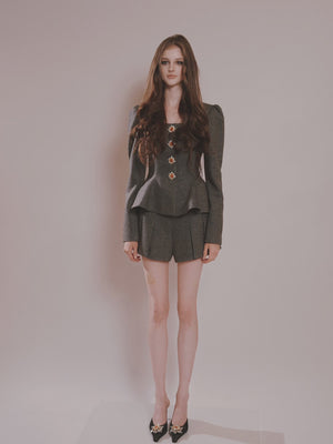 The chic fall look for girls comes from shorts. This shorts is made of soft and cozy tweed fabric. High-waisted fit slims the waistline. This versatile fashion item energise your autumn and winter wardrobe.