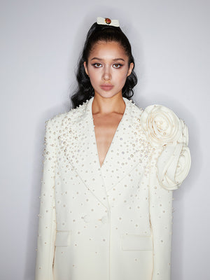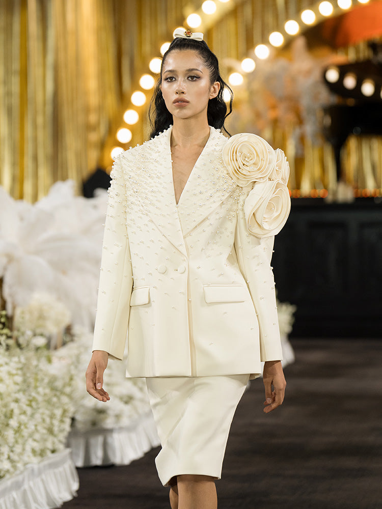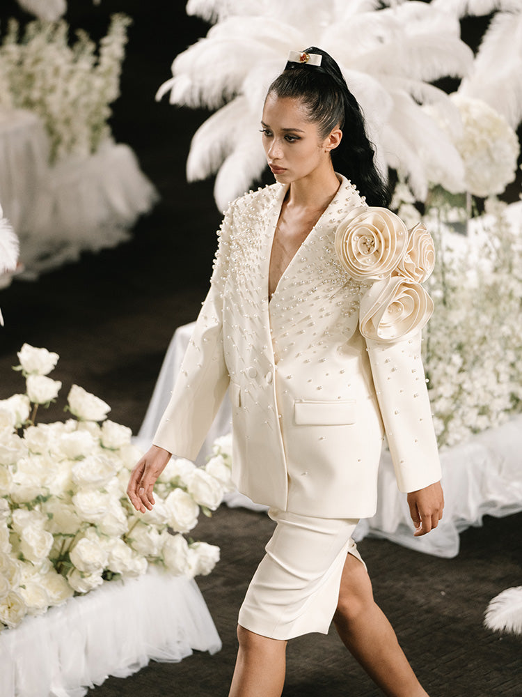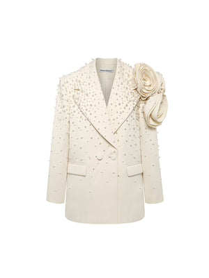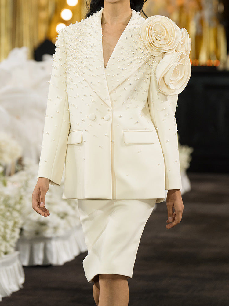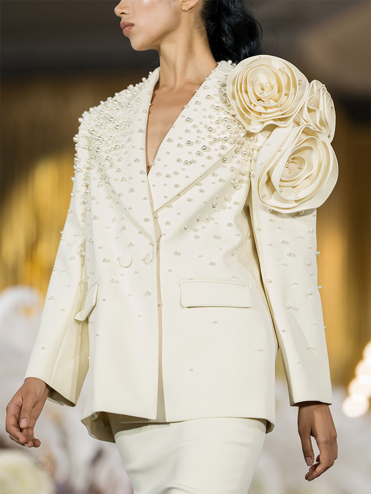 Handmade three-dimensional flower pearl blazer