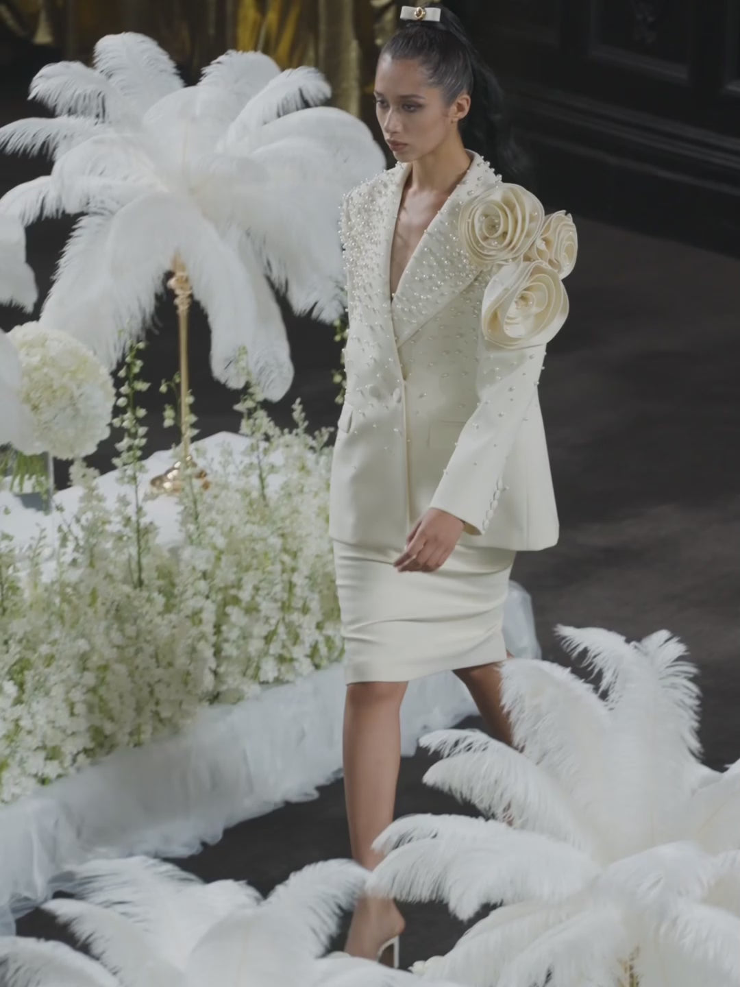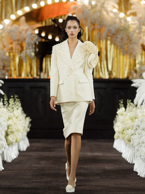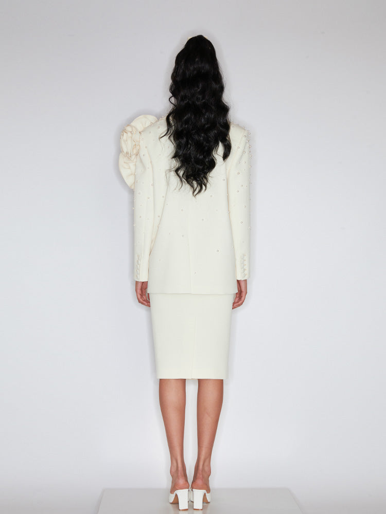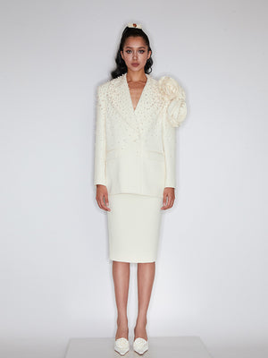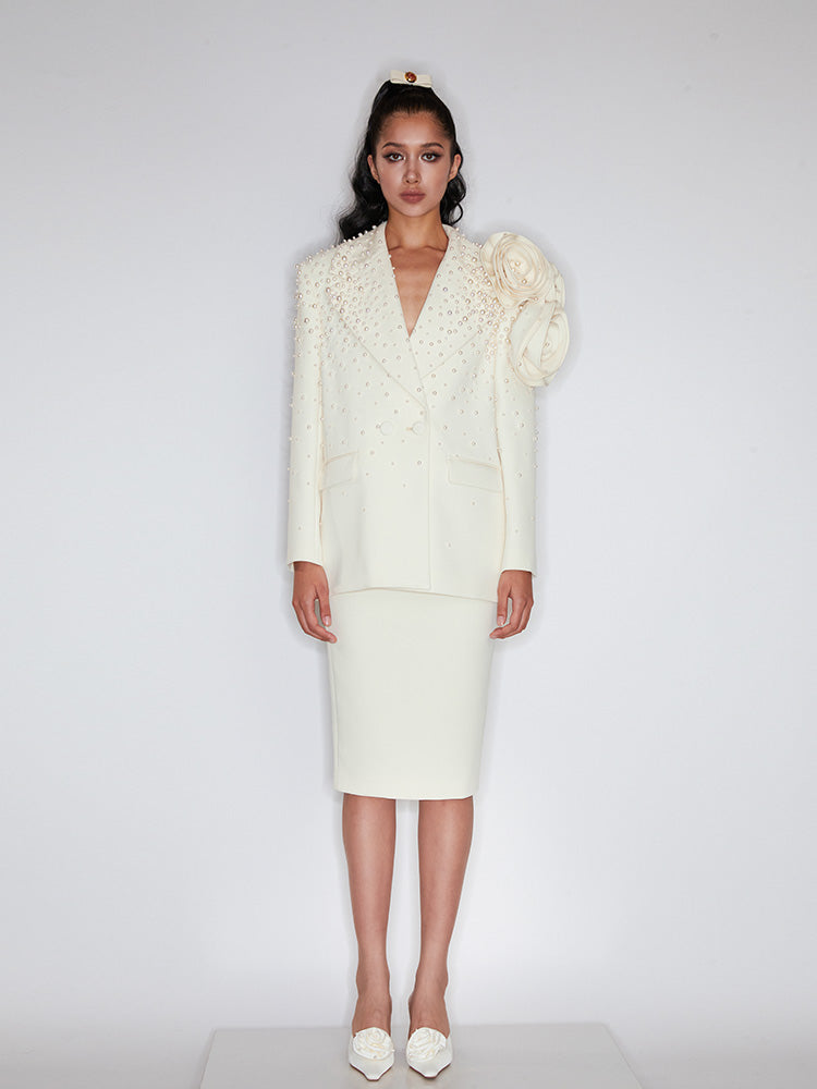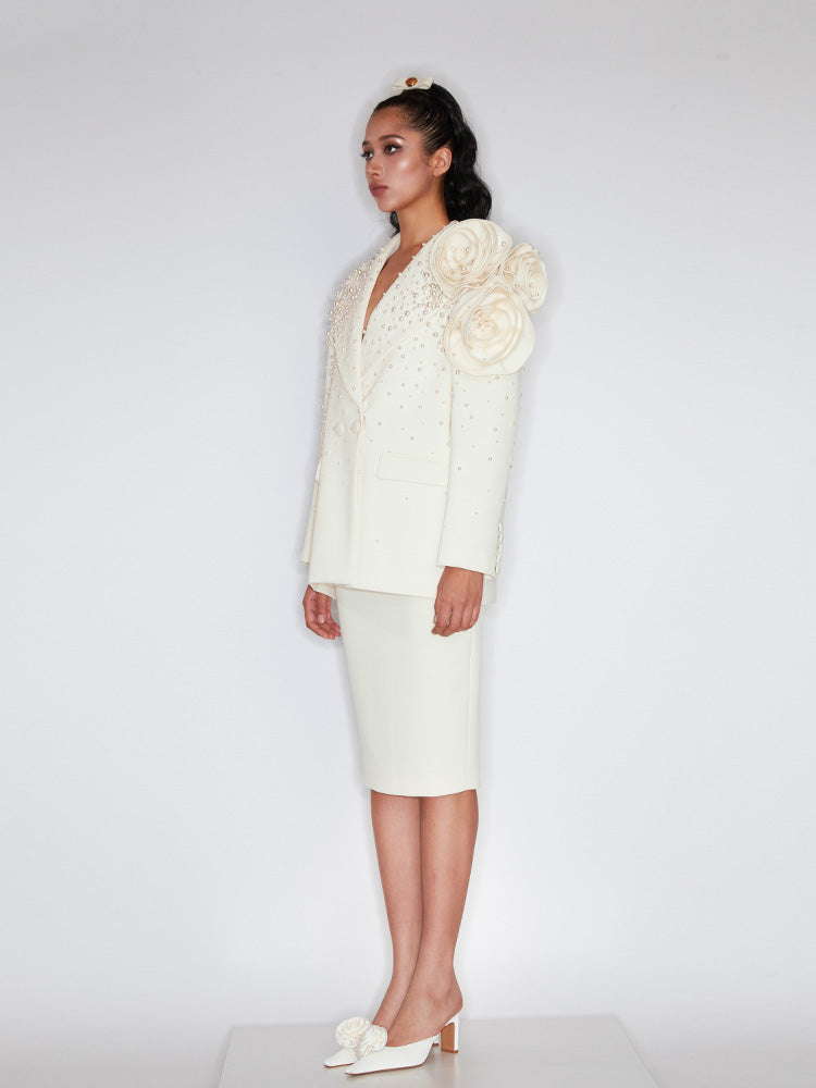Handmade three-dimensional flower pearl blazer