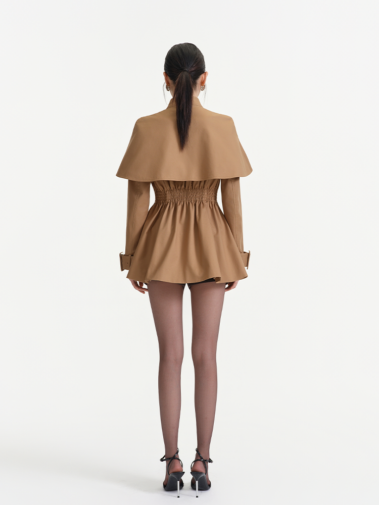 Khaki Cape Style Waist Cinched Trench Coat