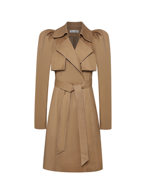 Khaki Trench Coat with Puffed Sleeves and Self Tie Waist