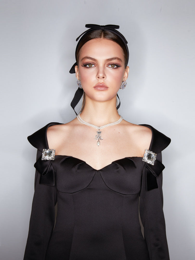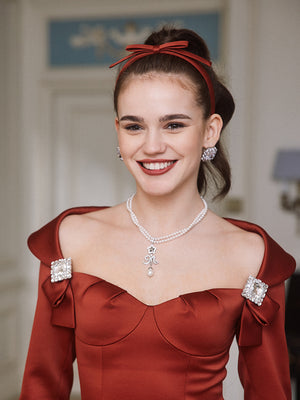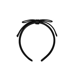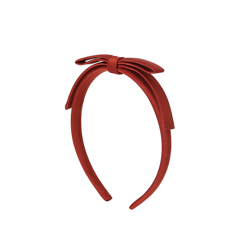 This hair band is crafted with precision and care, using a solid-colour satin material that is hand-stitched for durability. The bow shape adds depth and dimension to the design. This item is an ideal accessory for those seeking to enhance the elegance of their attire.