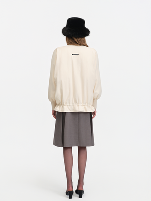 Off-White Short Jacket with Crew Neck and Ruched Hem