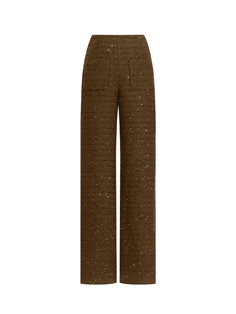 This sequined tweed straight-leg pant showcases gorgeous in its understated elegance, simplicity, and comfort; it’s a must-have, versatile fashion item for autumn and winter!