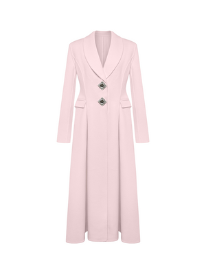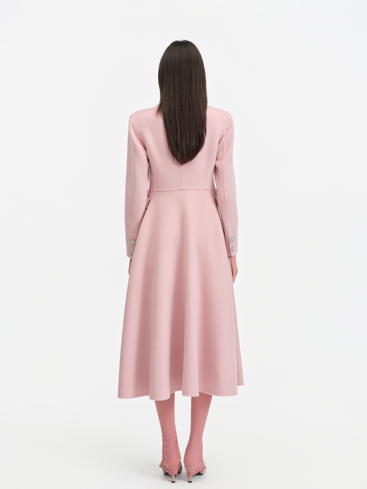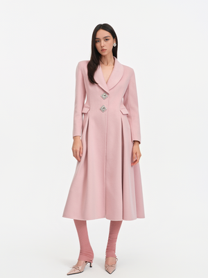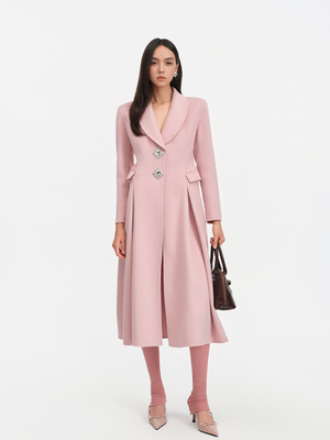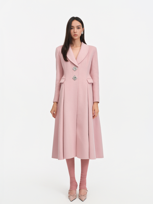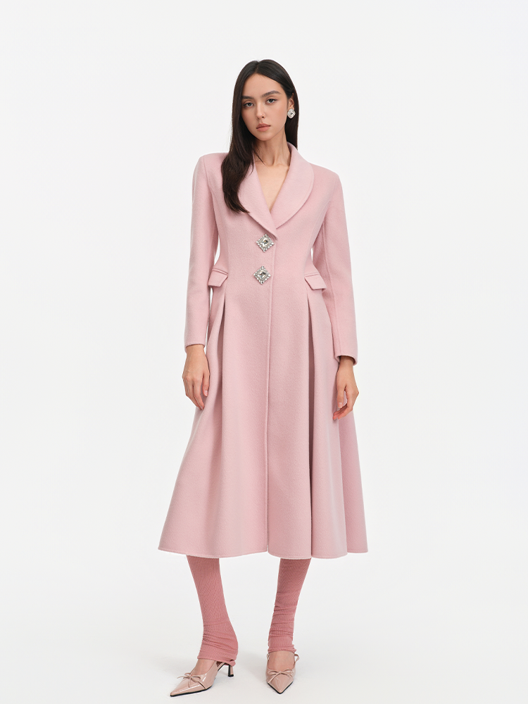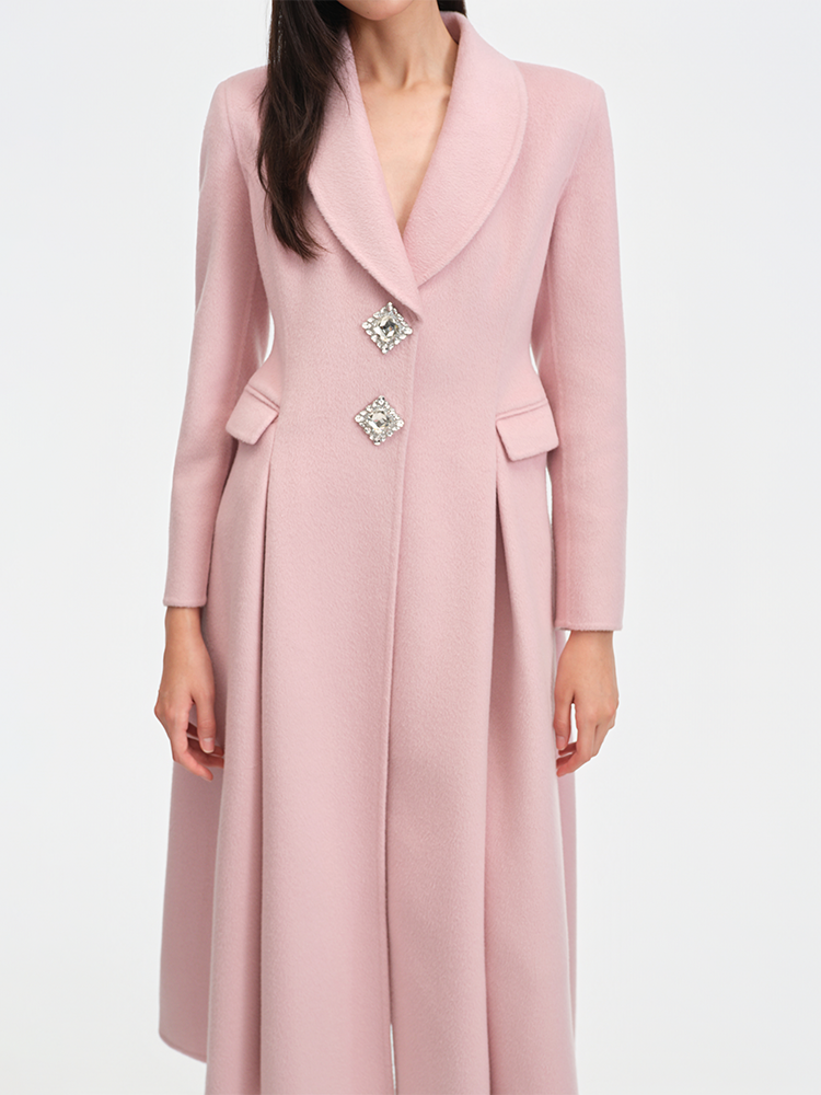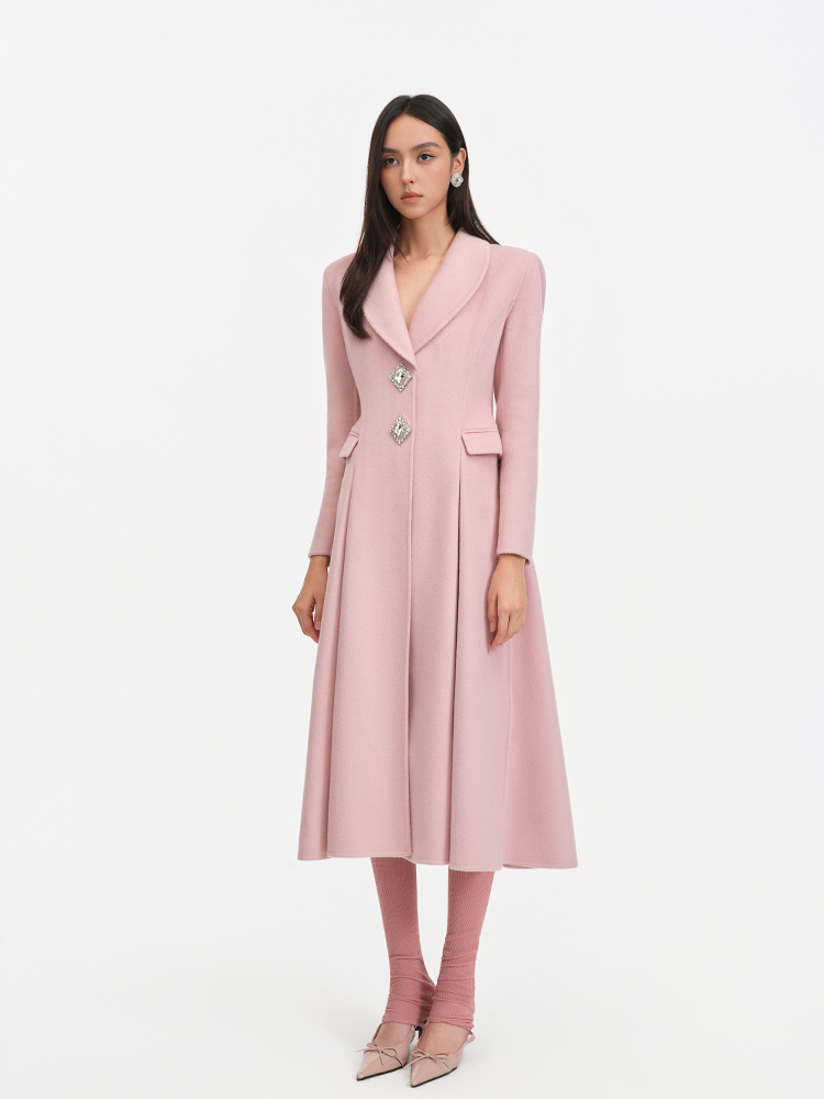 Soft Pink Diamond Button Wool Trench Coat with Tailored Collar